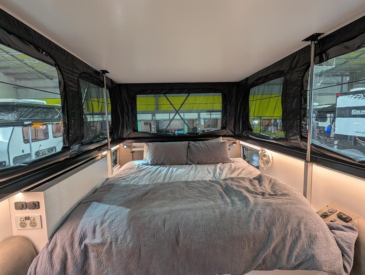 Meet the F14, a revolutionary fusion of caravan comfort and camper trailer versatility. With its sleek, aerodynamic low-profile design, the F14 is built for those seeking an affordable, fully equipped hybrid that fits easily under a standard garage or carport.