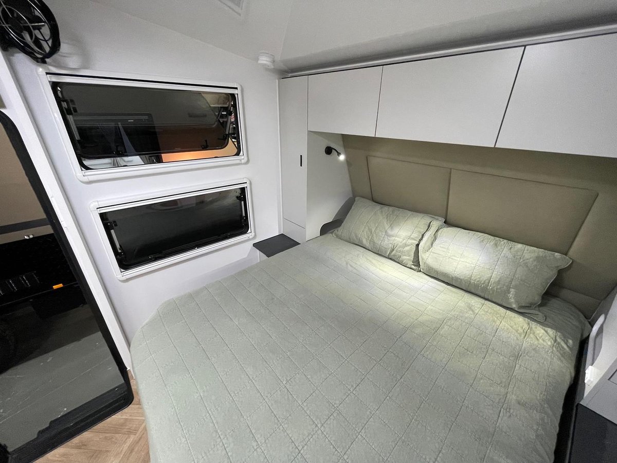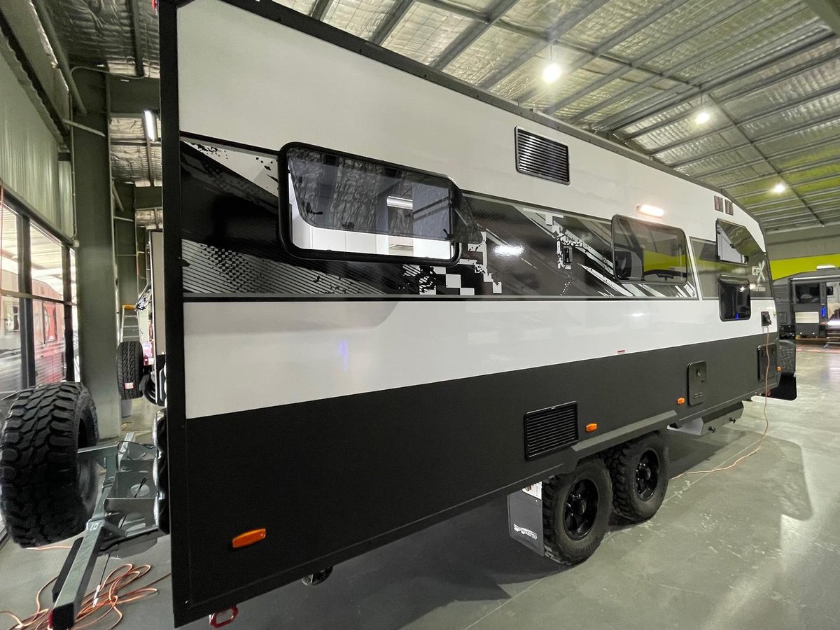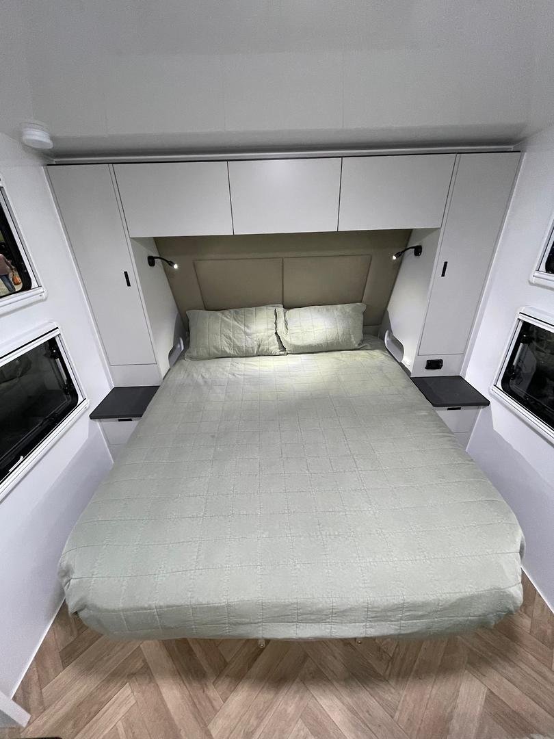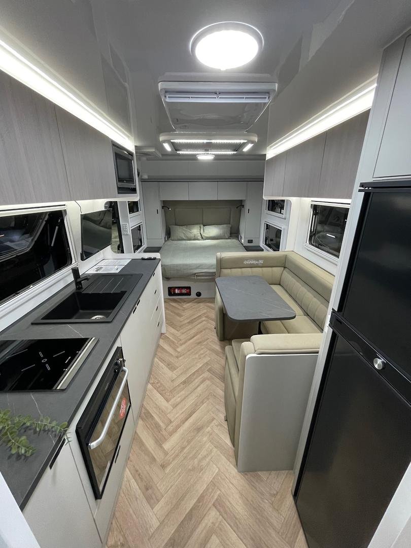 Internally you have the choice of high gloss furniture, 1 x Sirocco fan, smart TV, TV antenna, Bluetooth stereo, large 188lt Dometic 3-way fridge, dual USB points, water filter tap, continuous flow gas HWS, PROJECTA PM335 battery management system with DC-DC charger and display monitor, separate ensuite or combo shower/toilet (depending on model), extra drawer under the seat (where possible) plus much more.