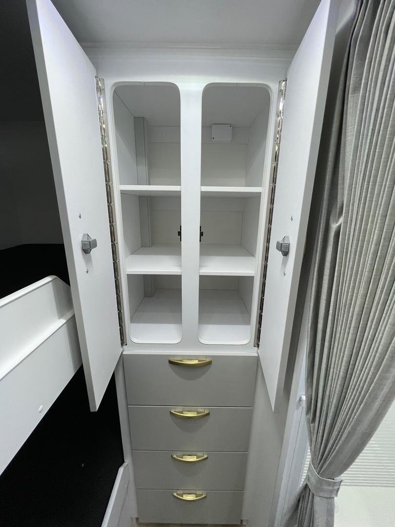 Comfortable main bed with overhead cupboards
