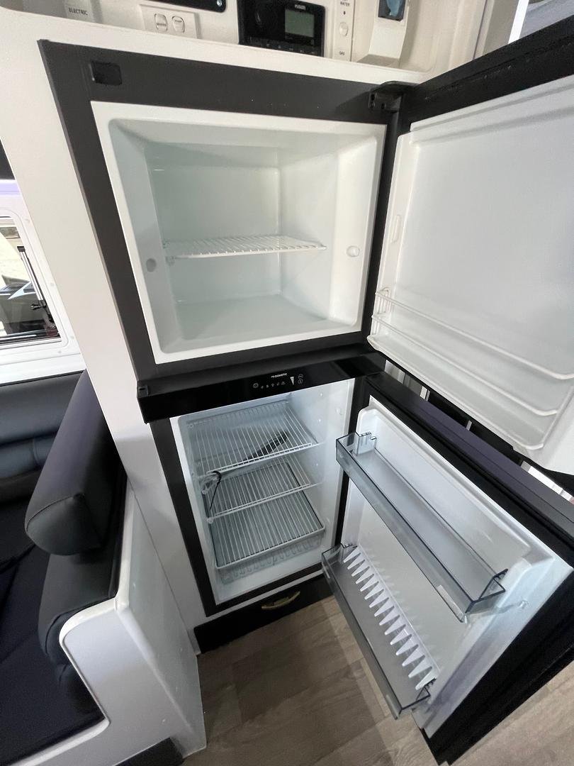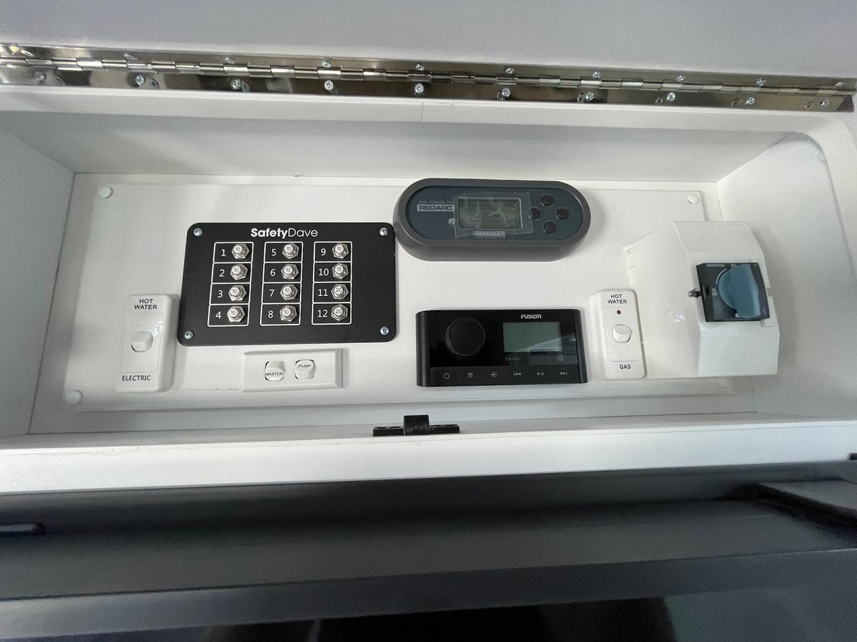 This van is fully equipped for extended stays with 2 x 95L fresh water tanks, a 95L grey water tank, and a Swift 28L gas/electric hot water system. Climate comfort is assured with the Dometic FreshJet 7 Series Pro air conditioner, full insulation, multiple roof hatches, and four internal wall fans.