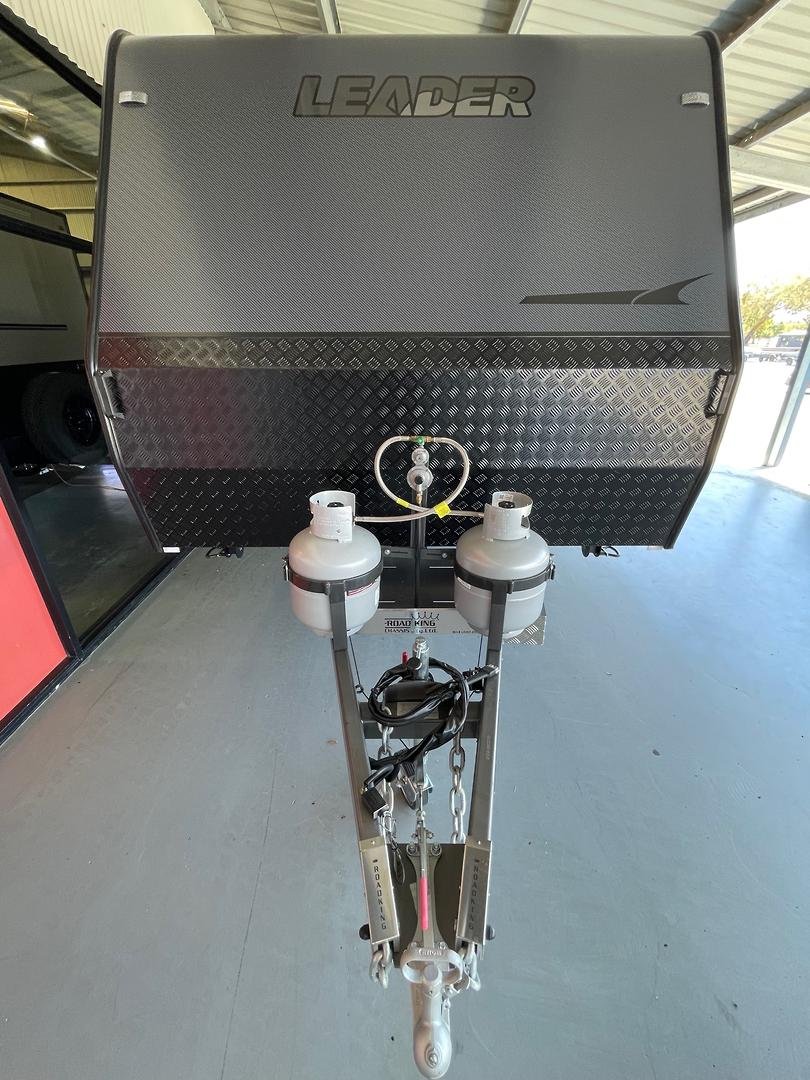 Now available is this MY2026 Leader Gold LE Double Bunk Caravan, a beautifully engineered and exceptionally well-appointed family caravan designed for extended touring in comfort and style. Built on a heavy-duty truss chassis and finished in the striking Leader all-black exterior, this van delivers both strength and sophistication.