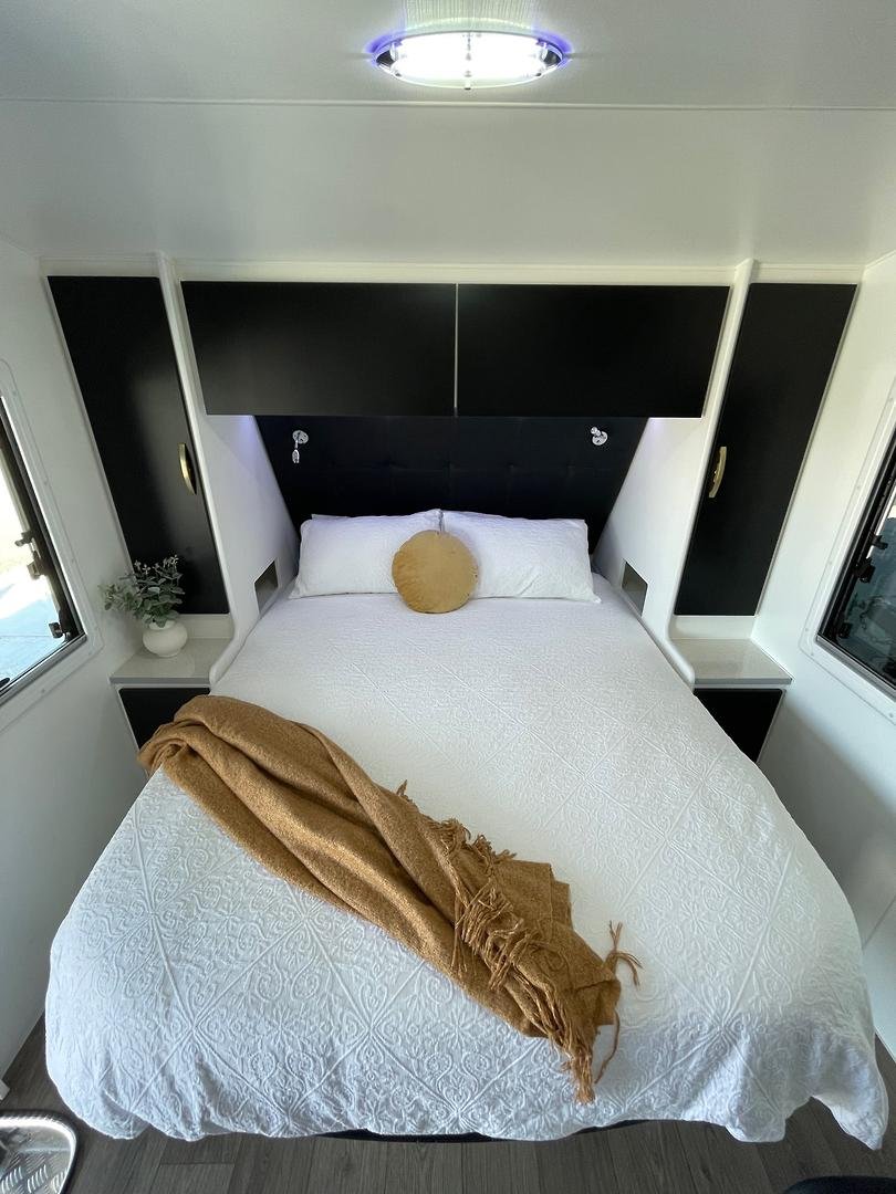 Designed for freedom away from powered sites, the electrical system includes a 200Ah lithium battery, REDARC Manager 30, and 2 x 210W solar panels, providing reliable off-grid performance. External 240V and 12V/USB outlets, Anderson plug, and full LED lighting complete the package.